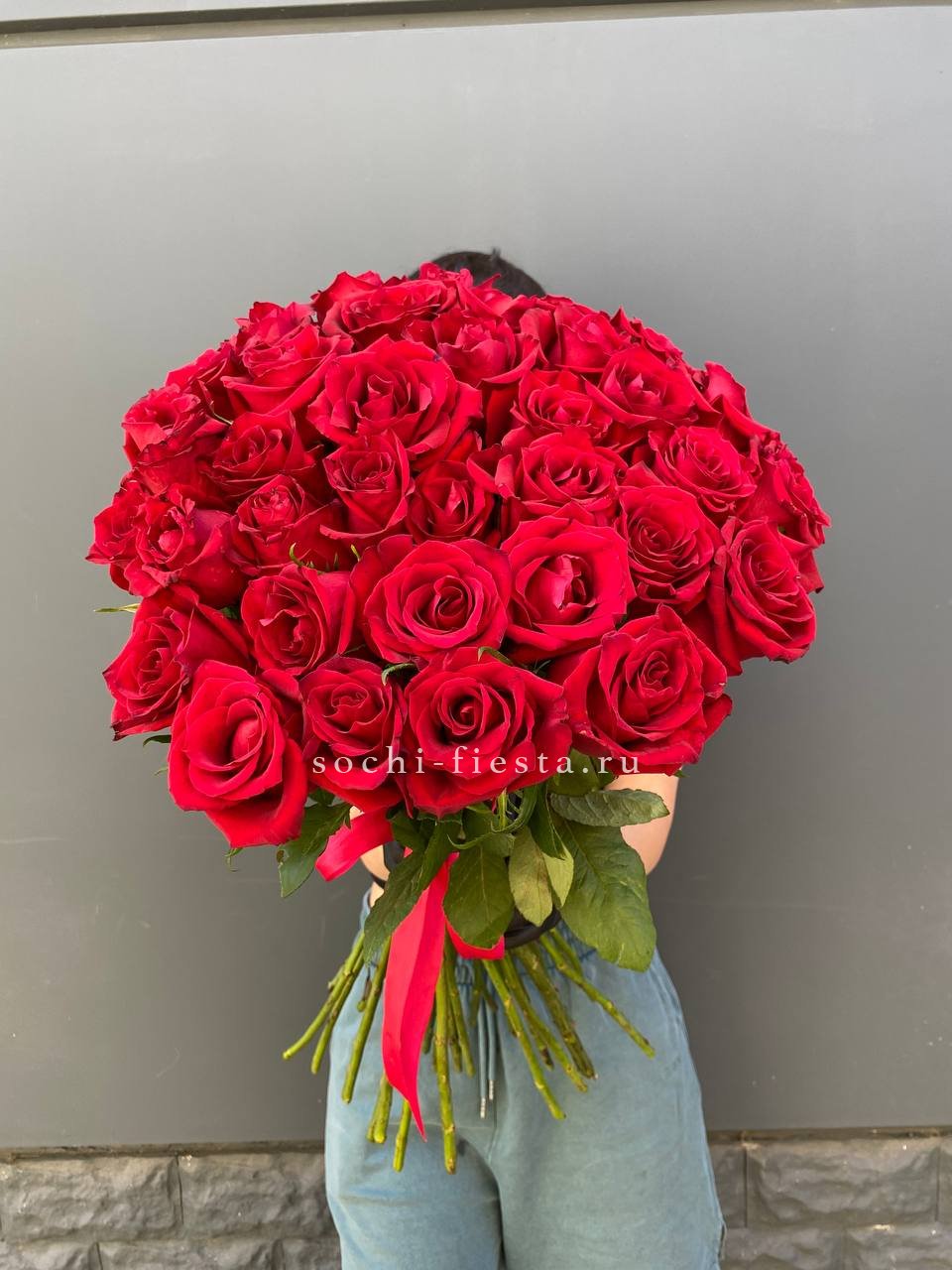 35 красных роз под ленту