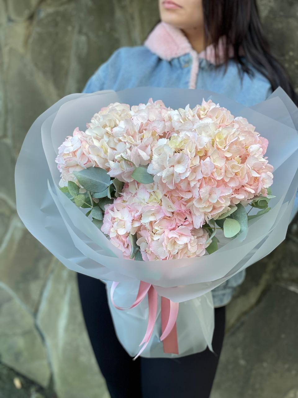 гортензия - 3 шт., лента, дизайнерская упаковка.