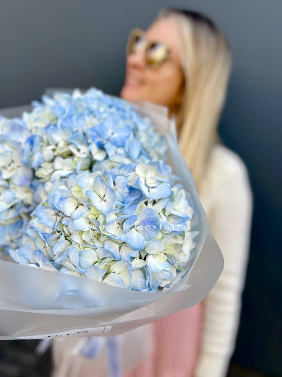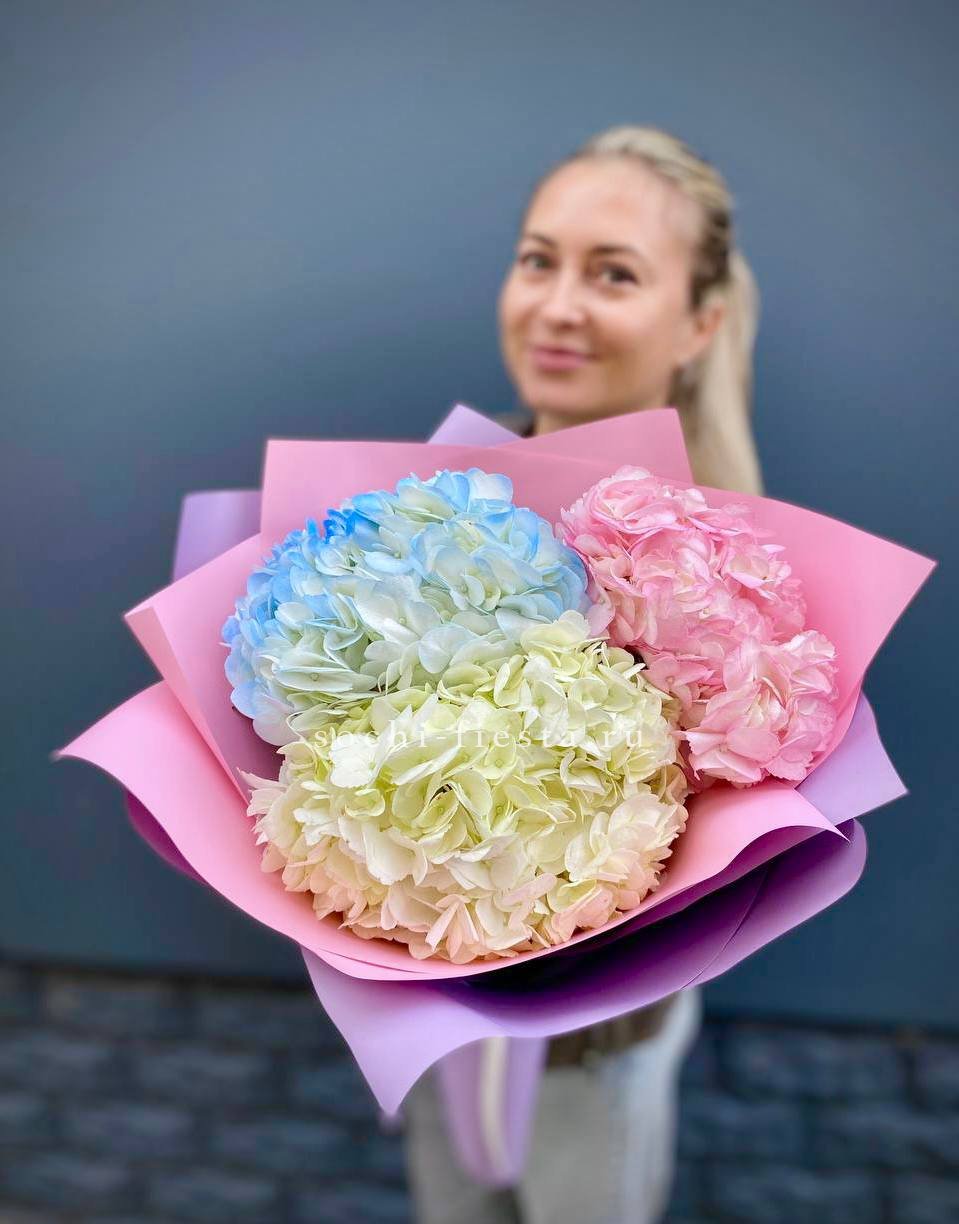 гортензия - 3 шт., лента, дизайнерская упаковка.