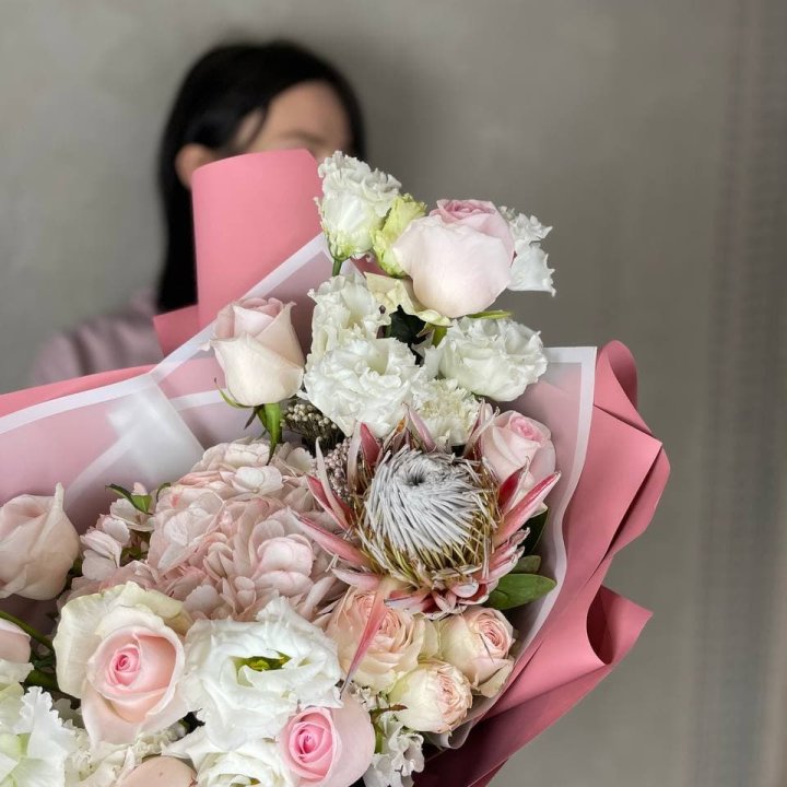 - Редкий состав — David Austin, ранункулюс, анемоны, сезонные пионы.