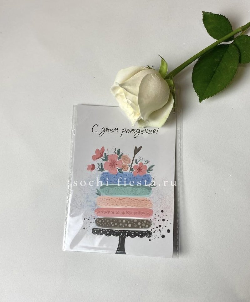 Для заказа товара "Открытка к букету "С днем рождения" торт" с доставкой в Энгельсе нажмите в корзину