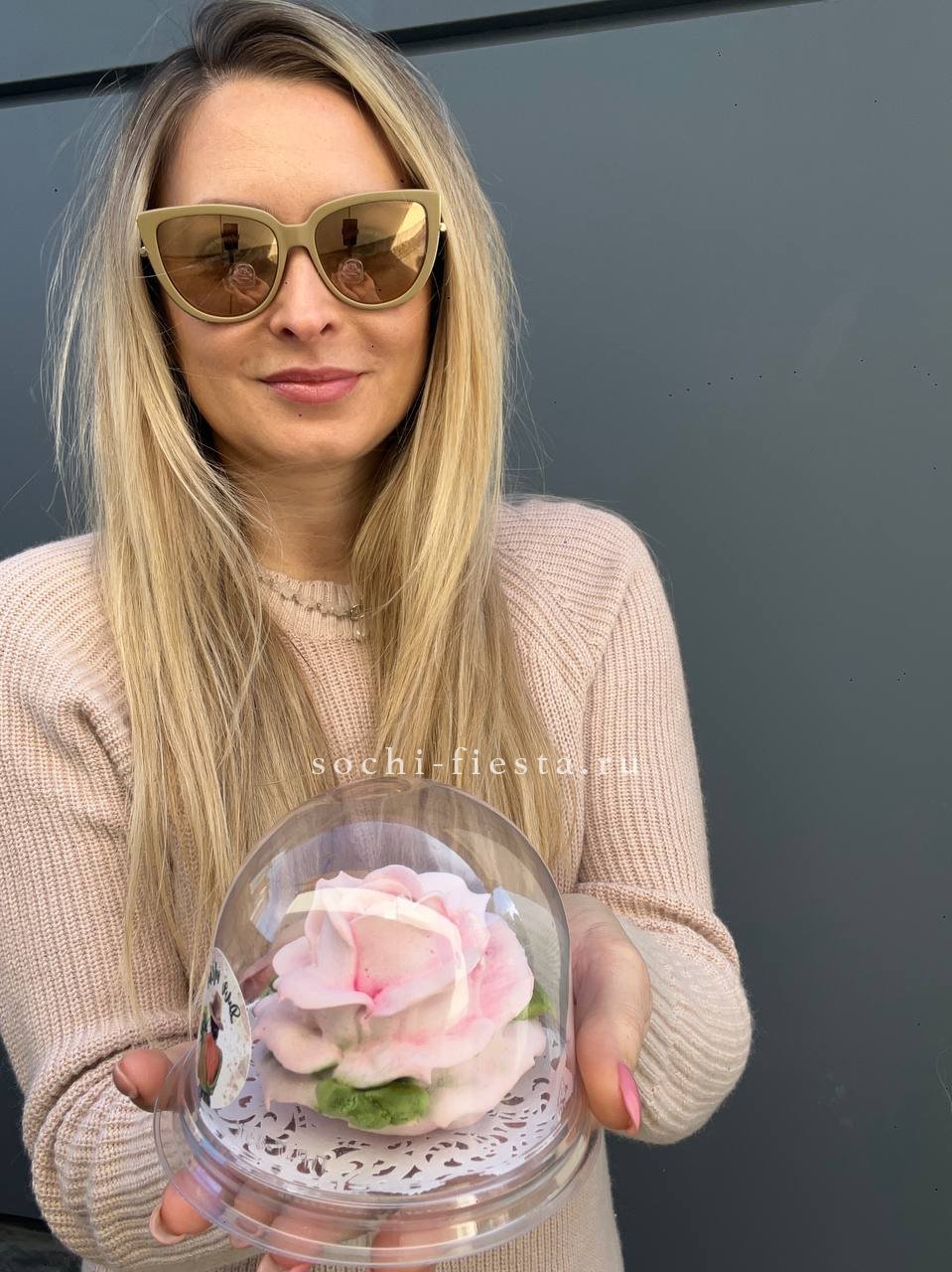 Зефир в форме пиона или розы повторяет фактуру живых лепестков. Каждый цветок сделан из натуральных ингредиентов и может стать сладким дополнением к основному букету.