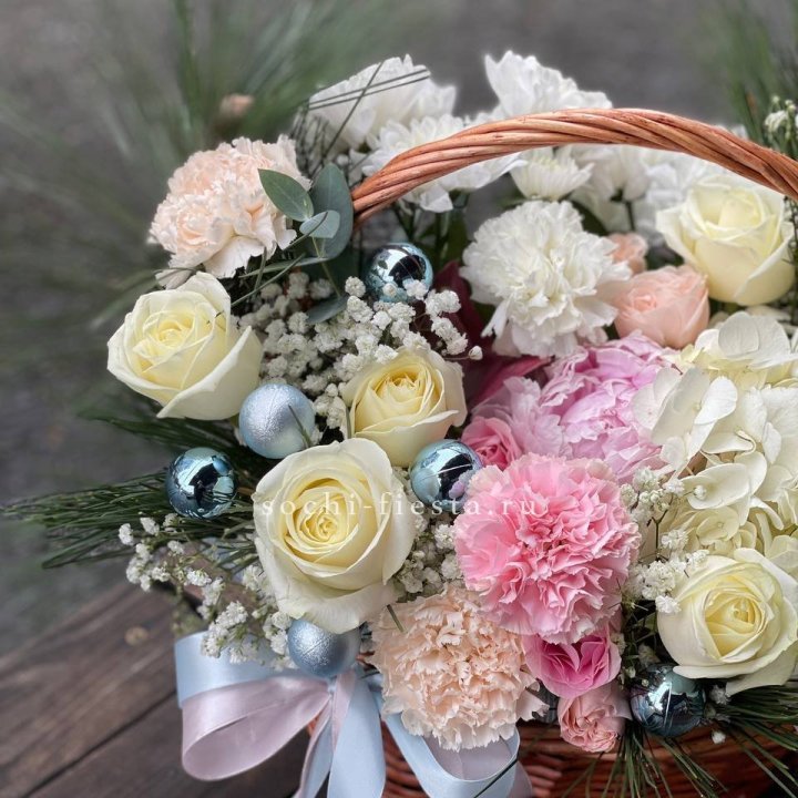 Каждый сезон приносит в Энгельсе свой ассортимент корзин. Весной флорист создаёт корзины с тюльпанами и нарциссами — лёгкие, нежные, полные ощущения обновления. В мае-июне приходят пионы — Sarah Bernhardt, Bowl of Cream, Red Charm — главный флористический праздник. Осенью — хризантема в тёплых гаммах с декоративными ягодами и ветвями. Зимой — хвойные аранжировки с амариллисом для праздничной атмосферы.