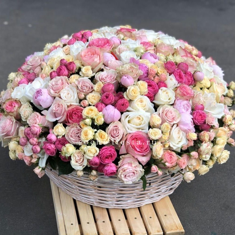 25 роз в цветочной корзине