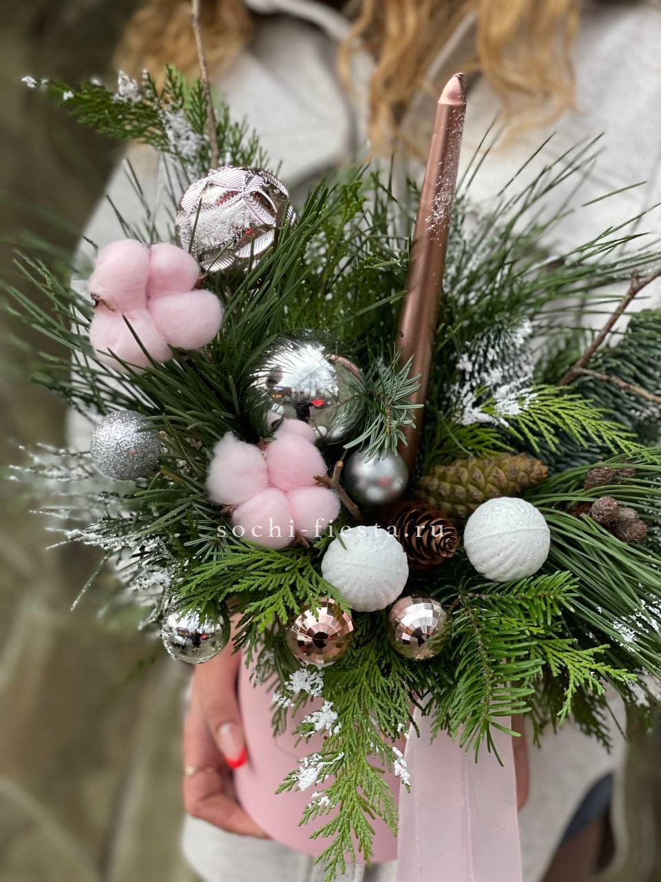 датский нобилис, игрушки, хлопок, свеча, оазис, бокс, лента Готовая композиция может иметь незначительные внешние отличия от примера на фотографии.