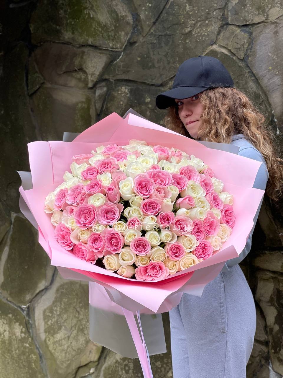 Мы работаем только со свежими цветами — букеты радуют от 7 до 14 дней и дольше при правильном уходе.