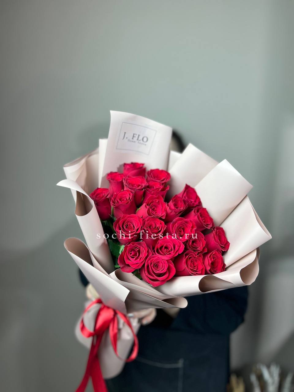 Двадцать один бутон держится долго и сохраняет свежесть благодаря качественному отбору и аккуратной сборке. Форма букета остаётся стабильной, а фоамиран защищает стебли и облегчает размещение в вазе.