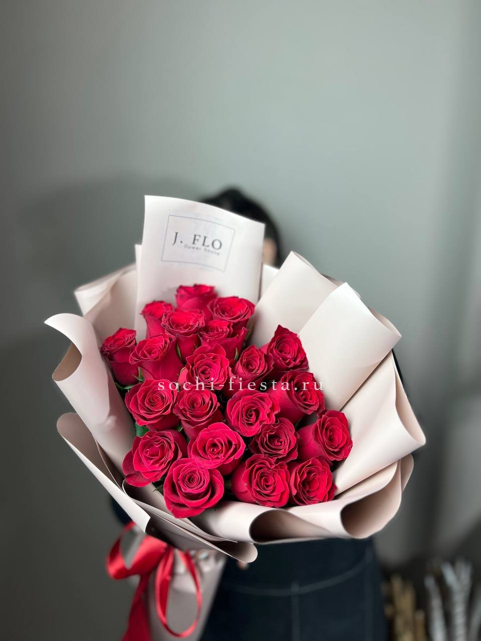 51 красная роза, лента, черный фоамиран или дизайнерская пленка.