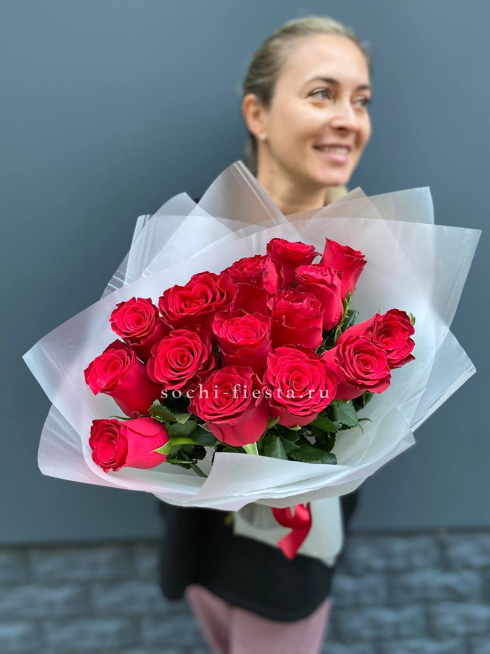 Алые розы с бархатистыми лепестками в авторской упаковке. Вы выбираете количество стеблей и получаете букет, который говорит без слов о силе чувств.