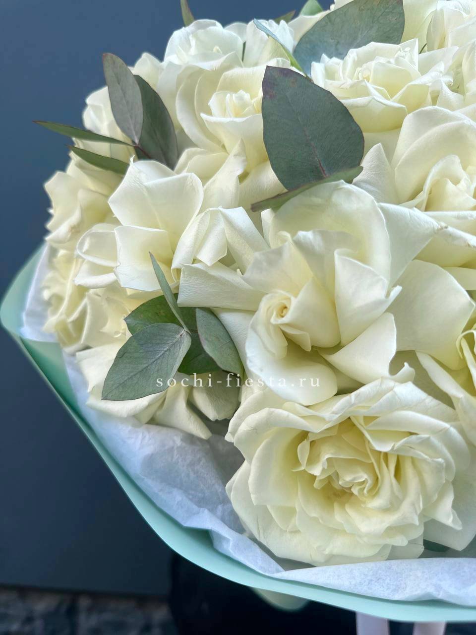 вывернутые розы - 19 шт., эвкалипт - 1шт., лента, авторская упаковка.