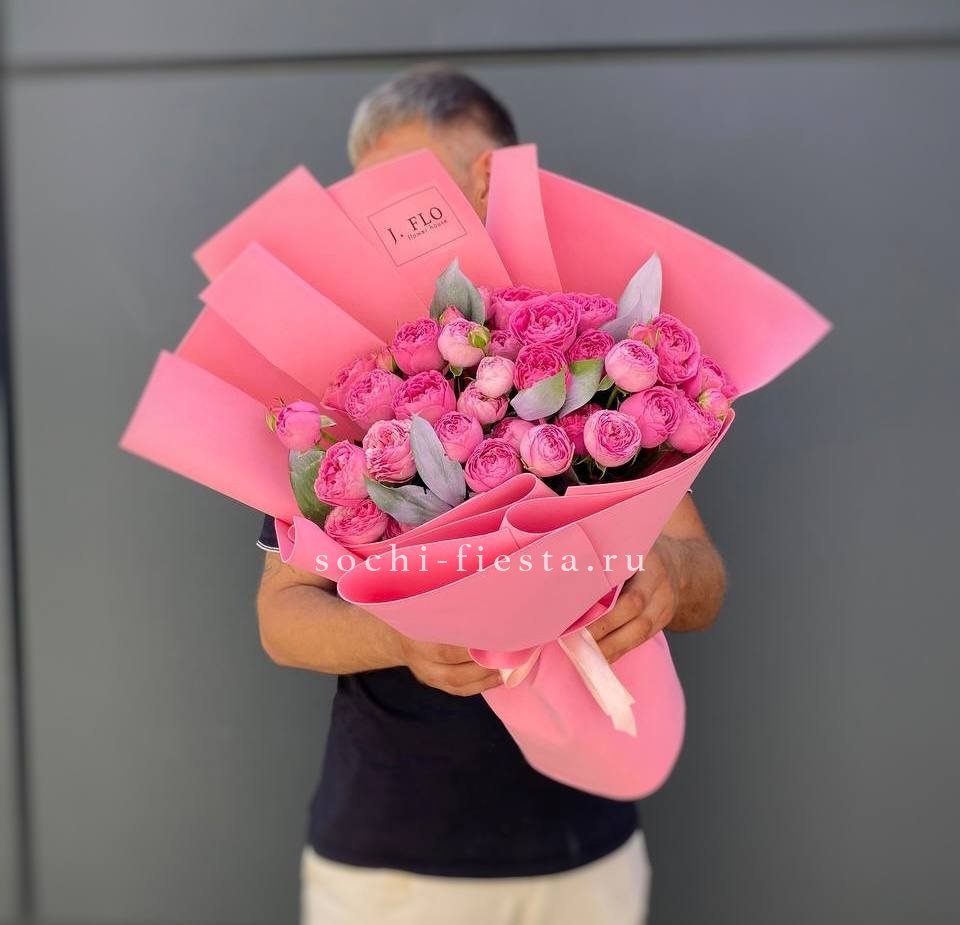 13 кустовых роз Bombastic, лента, дизайнерская упаковка.