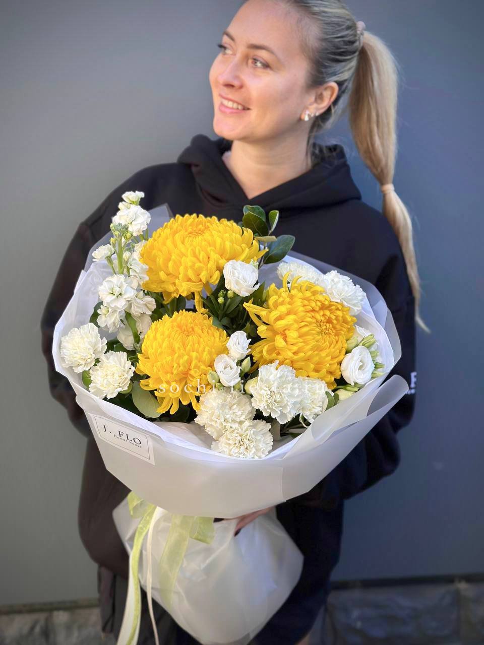 Маттиола и хризантема выстраивают плавную линию букета, где каждый бутон находит свое место. Autumn раскрывается теплыми оттенками и мягкой фактурой лепестков.