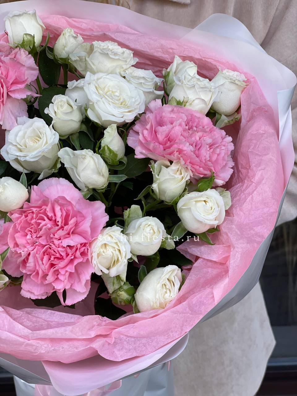 Для заказа товара "Букет розы с диантусами "Блэш"" с доставкой в Энгельсе нажмите в корзину